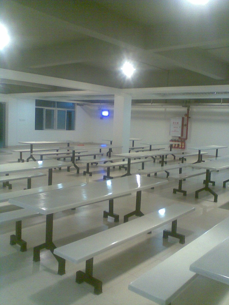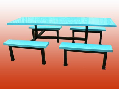 *材料:桌面、凳面为优质玻璃钢制作,三布五涂处理,1.0mm厚度铁架烤漆处理。