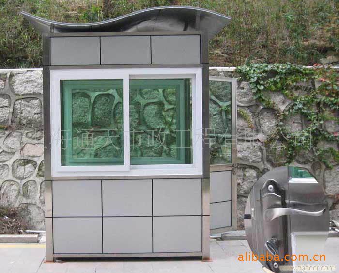 岗亭内墙板为铝塑板,外墙板为1.2mm不锈钢板,表面可做浮碳处理,颜色可自由选择