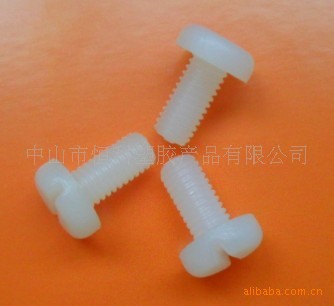 塑胶螺丝具有质量轻,绝缘,抗干扰,防锈,耐酸碱,耐候性强等特点,主要应用于电子工业,包装工业,现我司已有外六角头、半圆头、平头等头型的螺丝模具,与之配套使用有塑胶螺母,塑胶垫片。亦可按要求之颜色及尺寸生产。