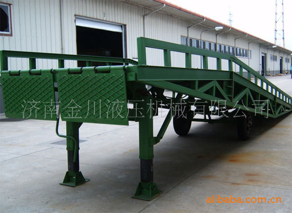 移动式登车桥采用意大利进口液压系统。它的主要作用是在货台与运输车辆之间搭起一座桥,使叉车便利地行驶,达到装卸货目的。该设备一端与货台等高,另一端搭在车厢后缘上,并能根据不同的车型及装车过程中车厢的变化,自动调整高度。该产品可根据用户的不同需要,在外形尺寸、承受载荷等方面作特殊设计。 登车桥可广泛地应用于邮政、粮食、车站码头、海洋运输等行业。
