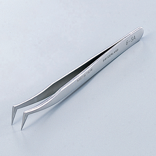 钩针型的顶部加工得较细,性质强韧的精密作业用镊子。