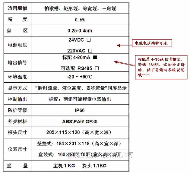 产品概述 ◇24VDC或220VAC供电 ◇数字分析安装助理 ◇现场背光中文三值同屏显示、按键操作 ◇模拟设置或现场设置 ◇去除虚假测量 ◇标准4-20mA输出,RS485输出 ◇压电浪冲安全保护 ◇支持标准堰槽(三角堰、矩形堰、等宽堰、帕歇槽)