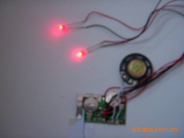 闪灯音乐贺卡/机芯:音乐响闪灯.随音乐闪,音乐停闪灯即停止闪烁,音乐有情人音乐、圣诞音乐、生日音乐、语音说话等等,同时也可按客人自己的音乐与功能要求设计开发。