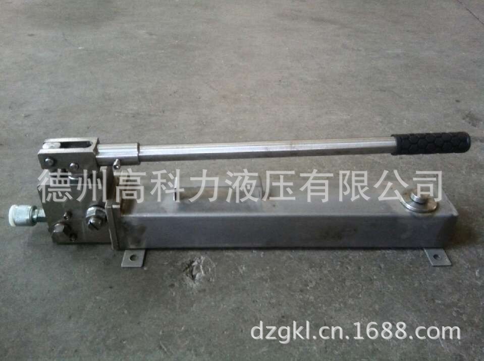 高压压力:80MPa,高压排量:2.5ml/pa;低压压力:5MPa,低压排量:2.5ml/ps,油箱有效容积:1.8L。整个泵体、油箱、压杆均采用304不锈钢材质。