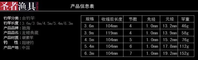 供应圣者渔具龙鲤典藏3.6/3.9/4.5/5.4米