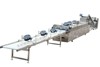 该机由搅拌机 、送料机、铺料机、全自动切块机、冷却输送机组成,整条生产线采用变频调速同步,PLC控制切块长度,七道滚筒压平,成型方正度良好,切块长度精确,整机连续式生产,真正实现了全自动智能化作业。