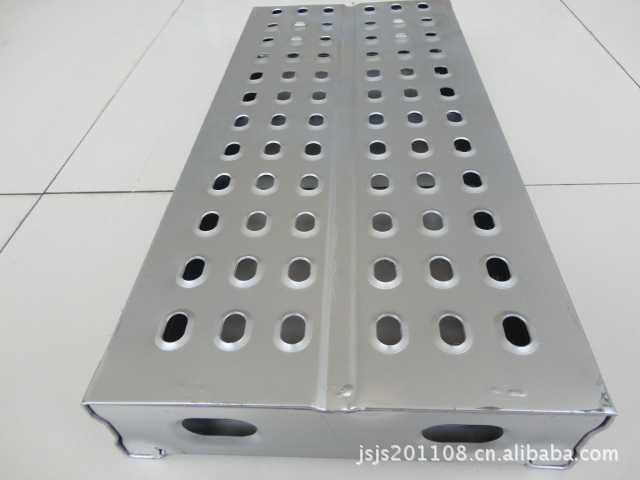 钢跳板是造船业,修船厂及建筑、安装企业施工工程中搭建脚手架配套使用的一种配套工具。我公司引进韩国先进全自动钢跳板生产流水线,生产速度快,每班可连续出900--1000片产品。本产品具有防火、重量轻、耐腐蚀、耐碱且抗压强度高、表面凸孔带翻边防滑效果好,孔距整齐成型规范、外形美观、经久耐用(正常施工可连续使用6-8年)。特有的漏沙孔防积沙特点,尤其适合造船厂涂装喷砂车间的使用。使用本产品时,搭建脚手架的钢管可以适当减少,并能提高搭建效率。价格比木板低,多年后报废仍可回收40%的投资等优点,深受广大造船业,石油平台、电力、建筑业的一致好评并被广泛推广使用。