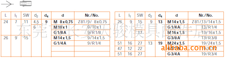 HASCO模具水咀 | 9.0 | 13.0 | 19.0 | 插母头那头的直径 |