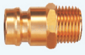 B、连接--当公头插入母头时,铜外套被其弹簧的作用力推到先前的位置致钢珠锁紧,流体流动,其中的O型圈阻止流体往外流。