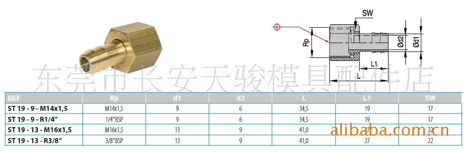 型号:ST19-9-M14*1.5,ST19-9-R1/4”,ST19-13-M16*1.5,ST19-13-R3/8”,可按客户要求的尺寸或图纸或编号生产。