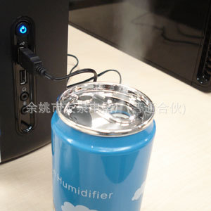 可乐罐迷你加湿器是友泉电器厂推出的非常适合放在案头用,适合办公室OL,车载使用。它通过超声雾化连续喷出水雾及负离子,为您带来丝般手感的超干雾粒,这些雾粒能够高效的中和空气中的坏分子,使其自然沉淀,并消除烟味、激活空气中的氧分子,预防“空调病”, 增强肌体免疫力;这些细腻雾粒还能在电脑屏幕周围形成负离子团,减少电脑屏幕辐射对眼睛及皮肤的伤害,预防近视,抑制色素的堆积,减少面部色斑的形成,起到美容的作用。如加入美容保湿液、空气消毒液等功能性浓缩液,可实现美容保湿、消毒等多种功能。小巧玲珑的它,不仅方便携带,还能让您的肌肤随时随地都能享受水的滋润。