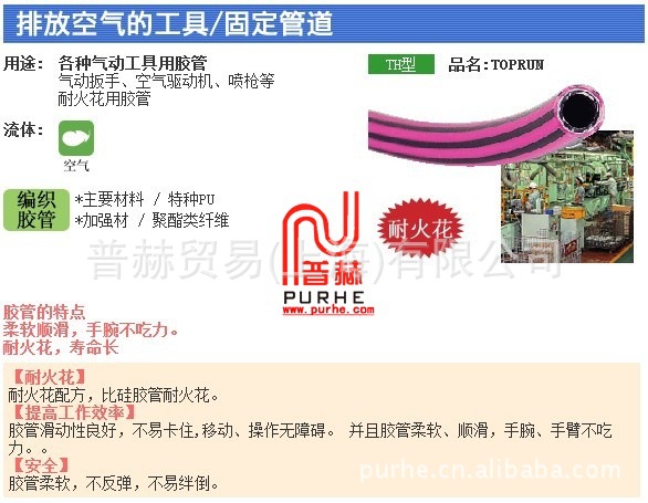产品特性:TOYOX各种气动工具专用管/PU管/高压气管/汽车维修用胶管、压缩机用胶管(气动扳手、空气驱动机、喷枪等)