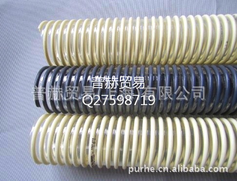 聚氨酯软管,带防震型硬质PVC螺旋塑筋加强,内表面完全平滑,外表面螺旋状花纹。具有良好的机械性能。非常轻且柔软。聚氨酯材料的特性使其具有比普通PVC管高5倍以上的抗磨损度和弯曲度。耐风化、耐大部分的化学品。