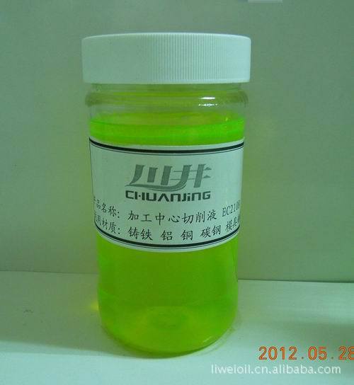 合成极压切削液 EC2128 | 1、高品质加工液,加水后为浅縁色透明溶液。 2、抗菌性良好,不易发臭变质,使用寿命为普通乳化油的4~6倍。 3、高润滑,低起泡,冷却与润滑性极佳,用途广泛,亦可用作端子的高速冲压。 | 铸铁、合金钢、碳钢、铝合金、模具钢 |