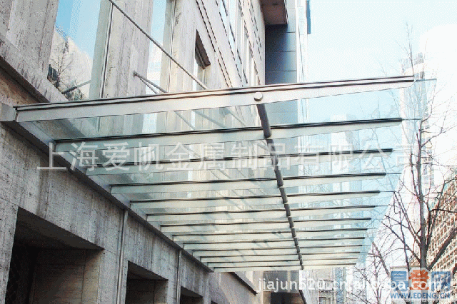 钢结构玻璃雨棚,上海玻璃雨棚,玻璃雨篷,不锈钢玻璃雨棚;玻璃雨棚;停车棚,天棚,场棚,彩钢瓦雨篷天棚,夹心板活动房,玻璃雨棚,自洁净玻璃,娄易玻璃工程,自洁净玻璃棚,玻璃房,专业生产、制作安装:各种款式、各种规格的玻璃雨棚。我公司生产的玻璃雨棚钢架,可根据客户的需要选择使用:工字钢、槽钢、圆钢管、方钢管、T型钢、H型钢等。驳接爪选用304不锈钢材质不生锈。玻璃根据实际情况可选用6+6或8+8的夹胶钢化玻璃。钢结构防腐使用优质环保氟碳油漆,可确保钢结构20年不生锈、不退色。我们以最优惠的价格,为您做出最诚信的服务。
