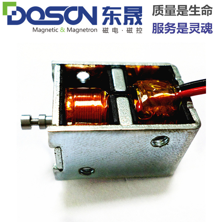 DSU0630-框架电磁铁,主要应用于门锁,ATM机等。在动作可靠性方面是此类电磁铁的一大亮点,经过实验室上千万次的耐久验证,确保零部件处理和结构的合理正确性