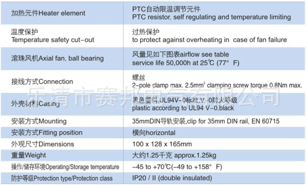 订货代号 | 型号 | 工作电压 | 功率 | 最大电流 | 设定范围 | 13060.0-00 | Fan Heater with thermostat | 230VAC,50/60Hz | 1,200W | 13A | 0 to +60℃ | 13060.0-01 | Fan Heater without thermostat | 230VAC,50/60Hz | 1,200W | 13A | — | 13060.9-00 | Fan Heater with thermostat | 120VAC,50/60Hz | 1,200W | 16A | +32 to +140℉ | 13060.9-01 | Fan Heater without thermostat | 120VAC,50/60Hz | 1,200W | 16A | — |