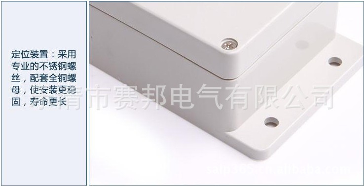 6.按装方式:1.内部按装—盒子内部有供线路板或DIN轨道元件安装的凸台,及自带的铜接线螺母(每只防水盒内部都配有最少二个以上的很常规的M4的铜螺母)2.外部按装--可通过盒体低部的安装孔直接固定于墙面(可通过盒子的四个角,直接用螺丝或钉子固定在墙上或板子上。)