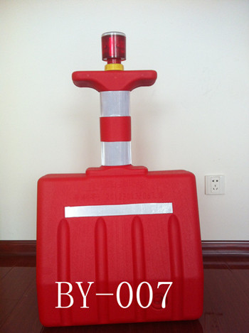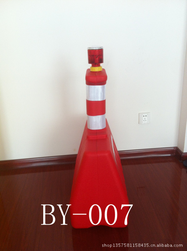 本产品使用全新PE料,防老化,抗氧剂,抗紫外线,色粉等生产,质量保证5年不退色,不老化,箱体可以注水能保证稳定。顶部可以装太阳能信号灯,体部装有夜间反光材料,可在夜间提高型车安全。