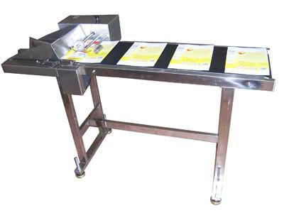 摩擦式分页机-塑料袋薄膜袋高速自动分页机 广州瀚森机械设备简介: 广州瀚森机械hanse-m300型号摩擦式分页机用于将成叠的纸类、纸箱或包装袋自动分开,分成单个传送到输送带上,便于喷码机或激光机进行喷印、喷刻生产日期、批号、防伪标记、图案等。从而减少人工分页的繁琐,充分发挥喷码机、激光机的高速喷印优点,提高喷印工作效率。本机机身全不锈钢制造,采用进口高精度变频器配合高等国产电机,具有很高的稳定性,并配备智能计数自动停机功能,方便生产管理。广泛应用于药品、化妆品、食品等各行业的喷码和喷印之用。 结构设计合理,美观大方耐用。 可选附件:自动收料装置--分页机单独计数停机信号 适用范围: 1、纸盒、纸袋、标签、纸片等。 2、卡类:IC卡,IP卡 产品特性: 1、分页速度:60—800张/分钟。 2、产品厚度:0.02—10 mm 3,配置了两个电机和两个变频器(一个用于分页头,另一个用于皮带传输),这样就使得分页的速度不受产品规格(长、宽)的影响;其次,产品与产品的间距可以任意设置,不再担心漏喷等问题;分页速度与传输速度可以任意匹。 4,结构优化:滚轮采用悬臂式设计,设备更轻便,主要是更换分页皮带非常简单. 5,彻底颠覆传统分页机的设计方式,放弃逆转轮分页机和摩擦式分页机易磨损皮带和难更换皮带的问题 6,一次性放料高度为500mm 设备名称 | 高速自动分页机 | 高速自动分页机(客户定制机型) | 型号 | hanse-220A | Hanse-220A F | 分页方试 | 逆转轮式 | 逆转轮式 | 被分离物尺寸长度 | 40-320mm | 40-500mm | 宽度 | 60-280mm | 20-1000mm | 厚度 | 0.02-5mm | 0.02-5mm | 电源 | 220V | 220V | 功率 | 180W | 180-370W | 智能计数自动停机功能 | 有 | 有/无 | 调速方式 | 变频无级调速 | 变频无级调速 | 外形尺寸 | 1420*560*865mm | | 备注 | 标准型 | 非标准型定做 |