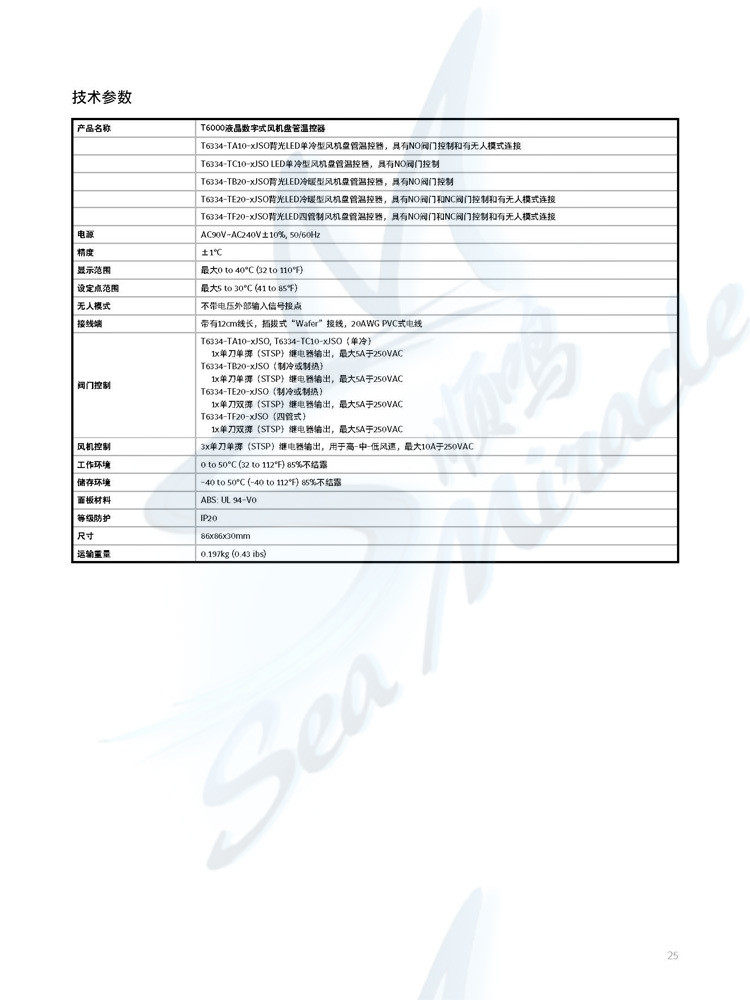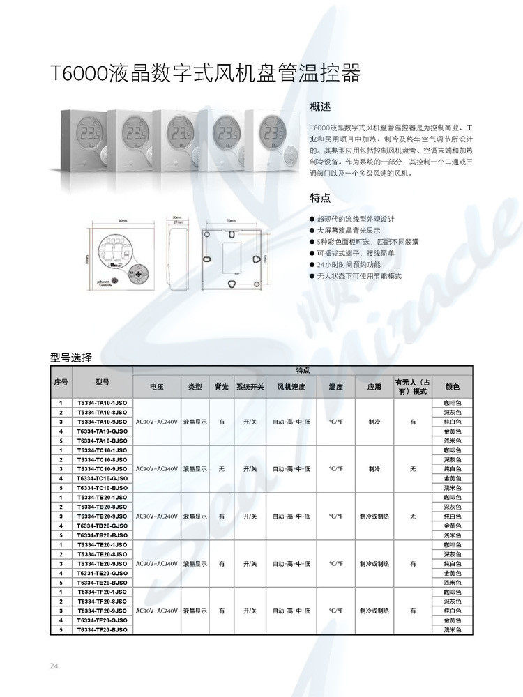 江森 T6634-TE21-9JSO液晶数字式风机盘管温度控制器