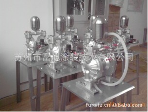 本泵浦是新世纪的换代产品,不仅款式新颖,吸力强劲,低噪音,体积小,而且流量是一般泵浦的两倍大,对于各种腐蚀性液体,带颗粒,高粘度,易挥发,易燃,易爆,剧毒的液体,陶瓷釉浆,果浆,胶水,油轮仓库油回收。临时倒罐等液体均能抽光吸尽。泵体过流部件材质采用铝合金,隔膜采用特种材料制造而成,寿命经久耐用。气动隔膜泵用于众多液体的安全输送,从强酸强碱到油漆涂料到泥浆,任何可以流动的物质都可以进行泵送。隔膜泵由于其通径宽大,可以让颗粒、磨料和粘性液体通过而不损坏泵。隔膜泵可干转启动,具有自吸性,在液体源中断时可长时间干运转而无损伤。隔膜泵可以通过简单地调节供气压力和流量来调节泵出液体的压力和流量。隔膜泵由于采用压缩空气作为动力,所以绝对安全,便于输送易燃易爆物品。台制产品:台制搅拌器、台制隔膜泵、粘度杯、涂料桶、压力罐,技术服务:我们将秉承专业的技术,为您提供从规划、设计、生产、管理培训、技术、设备咨询、效益监测及售后服务的整体解决方案和系统的技术服务。苏州市富旭涂装技术有限公司地址:江苏省苏州市相城大道168号A座15A20室电话:0512-675*971