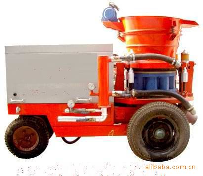 KSP-9型湿式混凝土喷射机 KSP-9型湿式混凝土用喷射机喷涂灌筑细石混凝土的施工法。常用于灌筑隧道内衬、墙壁、天棚等薄壁结构或其他结构的衬里以及钢结构的保护层。喷射混凝土有干拌法和湿拌法两种。干拌法是将水泥、砂、石在干燥状态下拌合均匀,KSP-9型湿式混凝土喷射机用压缩空气送至喷嘴并与压力水混合后进行喷灌的方法。此法须由熟练人员操作,水灰比宜小,石子须用连续级配,粒径不得过大,水泥用量不宜太小,一般可获得28~34兆帕的混凝土强度和良好的粘着力。但因喷射速度大,粉尘污染及回弹情况较严重,使用上受一定限制。KSP-9型湿式混凝土喷射机湿拌法是将拌好的混凝土通过压浆泵送至喷嘴,再用压缩空气进行喷灌的方法。施工时宜用随拌随喷的办法,以减少稠度变化。此法的喷射速度较低,由于水灰比增大,混凝土的初期强度亦较低,但回弹情况有所改善,材料配合易于控制,工作效率较干拌法为高。KSP-9型湿式混凝土喷射机 KSP-9型湿式混凝土喷射机特点:品质优良,工作可靠,性能稳定,操作方便。涵盖防爆、非防爆不同机型,适应不同的施工环境。行走方式具有胶轮、轨轮(轨距=600mm、762mm、900mm)轮胎等多种形式,可供方便选择。采用新型复合压紧弹簧,密封性更好。喷射混凝土是利用压缩空气,将按一定配比的混凝土拌和料通过管道输送并高速喷射到受喷面上凝结硬化,从而形成混凝土支护层。近年来,喷射混凝土技术以其简单的工艺、独特的效应、经济的造价和快捷的施工速度,在建筑、铁公路隧道施工、矿山井巷建设、边坡加固等领域广泛应用。 1. KSP-9型湿式混凝土喷射机水泥,水泥应优先选用凝结硬化快、保水性好的普通硅酸盐水泥,其次为火山灰水泥,水泥标号不低于 325 # 。 2.细骨料,喷射混凝土用砂以中、粗砂为宜,细度模数大于 2.5 。要提前一天用水浇透成潮砂,以捏起成团不散为宜。 KSP-9型湿式混凝土喷射机 3. 粗骨料 喷射混凝土所用石子粒径应控制在输料管内径的 1/2 以下,最大粒径不大于 20mm 。如石子粒径过大,会造成管路堵塞或施工时混凝土回弹量显著增加。回弹物中主要是粗骨料。据统计,其中石子占 60% ~ 70% 。混合料中粗骨料含量大时,回弹量将增加,而且粗骨料粒径越大,越容易从受喷面弹落下来。据测定,采用粒径 20mm 的粗骨料时回弹量比采用 10mm 的粗骨料增加近 60% 。 4.水 喷射混凝土用水与普通混凝土相同,不得使用污水及 pH 值 < 4 的酸性水、含硫酸量按 SO4 2- 计超过水重 1% 的水及海水。本公司生产销售的喷浆机有如下型号: 1、 湿喷机:KPS系列湿式混凝土喷射机,KSP-5/9型湿式混凝土喷射机,HSP混凝土湿喷机等产品; 2、 矿用潮喷机:PC5T矿用潮喷机 3、 PZ系列喷浆机:PZ-5喷浆机,PZ-5B矿用防爆喷浆机,PZ-5B电机防爆喷浆机,PZ-5B整机防爆喷浆机以及PZ系列混凝土喷浆机等产品;其他种类:PCZ-5型喷浆机,PZG-5C喷浆机,HPZ-5型混凝土喷射机,HPC-VB混凝土喷射机, 4、 以及其他各种井上用,建筑用等喷浆机。 5、 喷浆机配件:齿轮,喷浆机钢衬板,喷浆机快速接头卡兰,喷浆机料腔,喷浆机密封板,喷浆机喷浆管,喷浆机喷头,喷浆机喷头总成,喷浆机喷头座,喷浆机弯头,喷浆机橡胶板,喷浆机弹簧,喷浆机旋流器配件,喷浆机压紧装置,喷浆机锥形套管等一系列喷浆机配件产品。