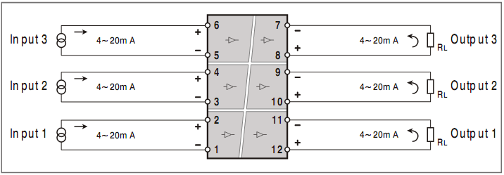 - 直流电流源4~20mA 输入,4~20mA 电流信号输出