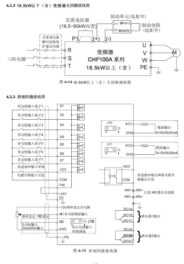 4、0.75KW-15KW各规格内置制动单元,如需快速停车,可直接连接制动电阻;