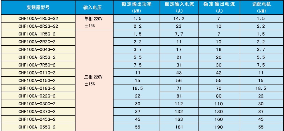 CHF100A系列矢量通用型变频器为CHF系列功能增强型产品,其融合CHF100、CHE100所有优点于一身;采用DSP控制系统,完成优化的无速度传感器控制、V/f控制,功能更优化,应用更灵活,性能更稳定。可广泛应用于风机、泵类负载及对速度控制精度、转矩响应速度、低频输出特征有较高要求的应用场合。