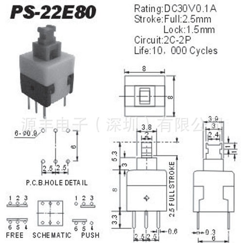 PS-22E80L:此款型号尺寸为:8*8MM