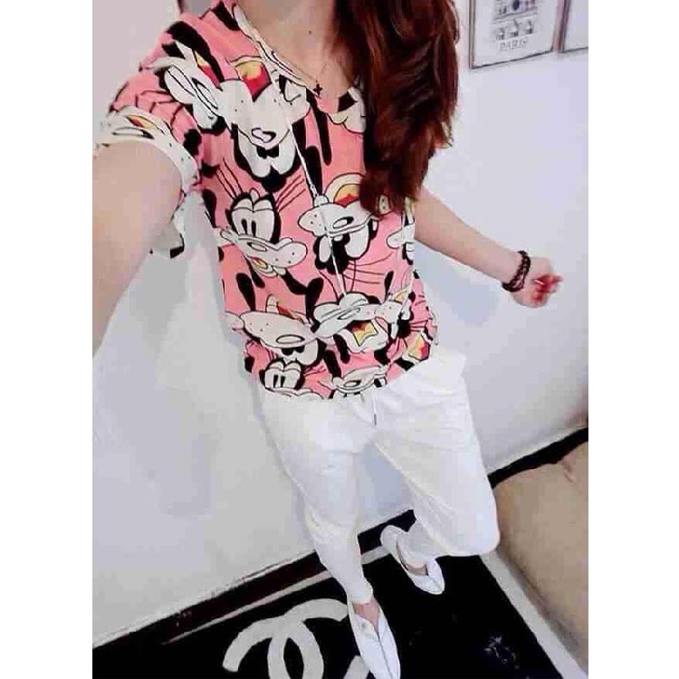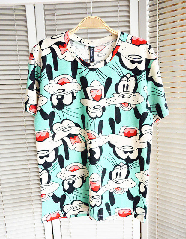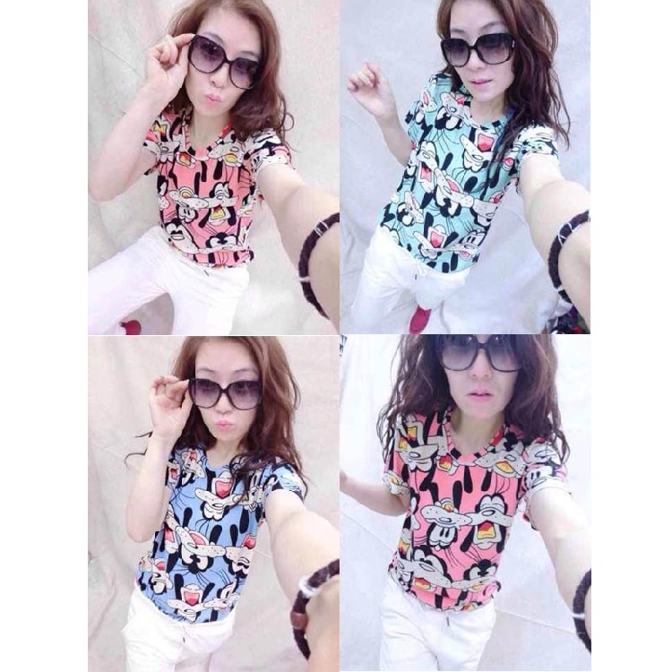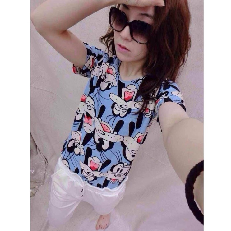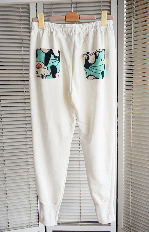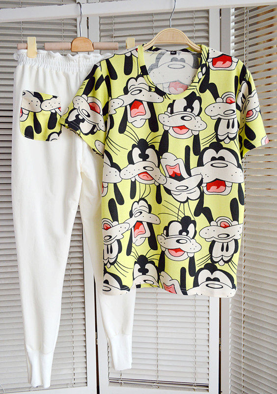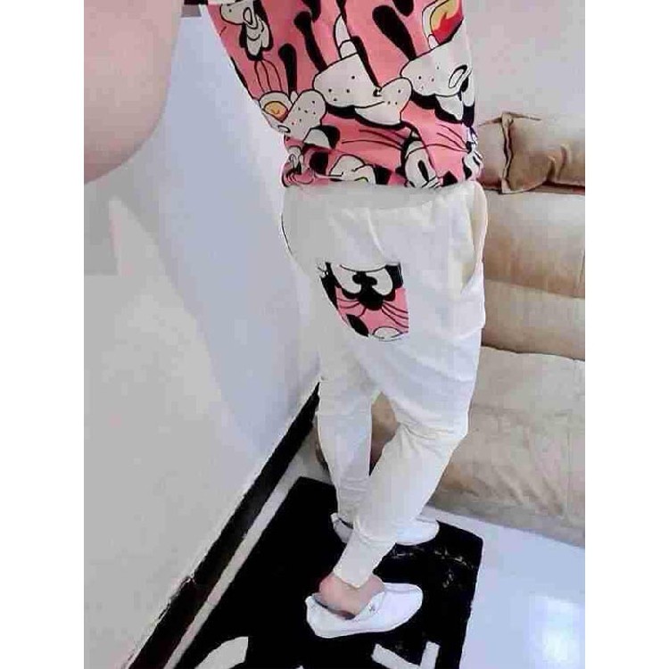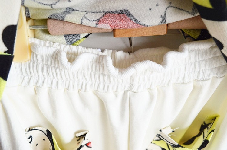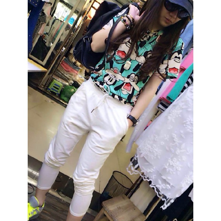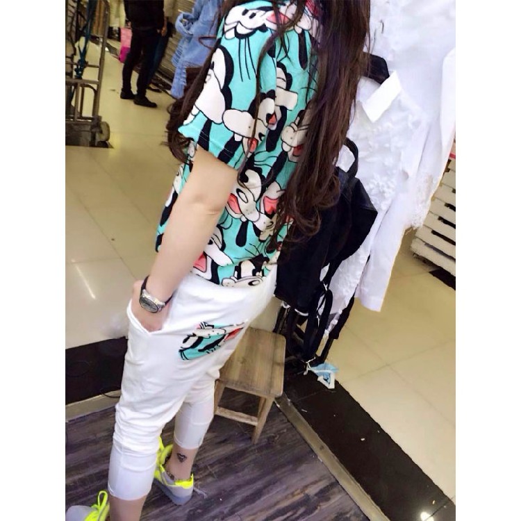 欧洲站2014春夏新款女装可爱休闲卡通图案t恤+哈伦小脚裤两件套