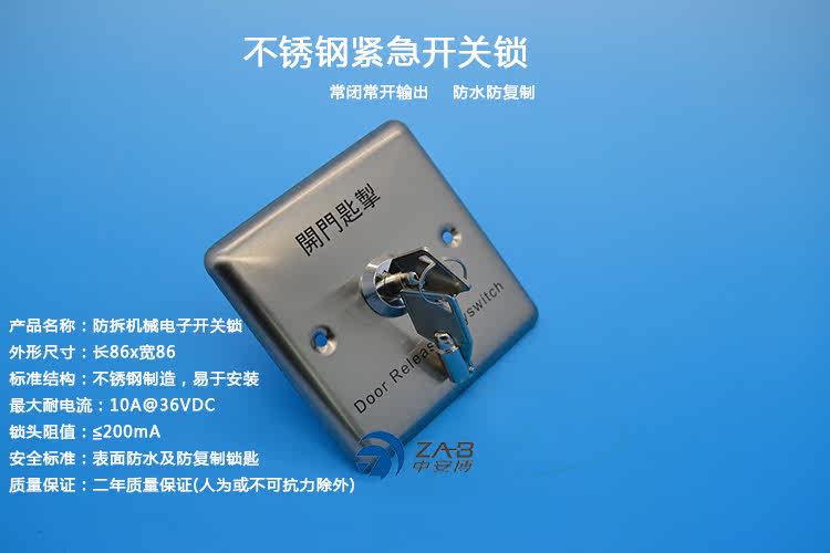 不锈钢钥匙开关/消防开关不锈钢紧急开关锁/不锈钢开门匙掣开关
