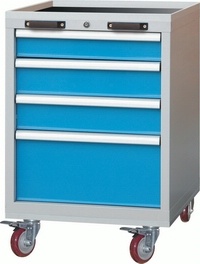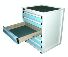 本公司生产的工具箱材料采用上海宝钢ST12优质冷轧板,外壳1mm,抽屉0.8mm,下焊有加强筋,每个抽屉承重80kg以上,抽屉采用优质滚珠滑轨,承载力大,经久耐用。 前道钣金都是模具化冲压成型,焊接牢固,表面平整光滑。防锈处理采用高温乳化和碱性助洗、除油、磷酸除锈、高温锌系薄膜磷化、钝化等九道工艺防锈处理,再采用进口静电喷塑流水线亚光喷塑,亮度28度,颜色为浅灰。所有零部件表面与内壁同样处理,防锈蚀性能优良,附着力强,美观大方。