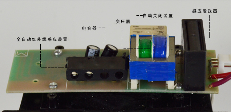 干手器的工作原理一般为传感器检测到信号(手),此信号看控制打开加热电路继电器及吹风电路继电器,开始加热、吹风。当传感器检测的信号消失时,释放触点,加热电路及吹风电路继电器断开,停止加热、吹风。