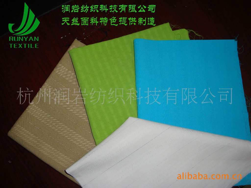 天丝纤维是一种天然纤维素纤维,是一种新型的生态环保型纤维。 天丝面料湿强力好,尺寸稳定,水洗缩率小,经处理可以免烫,具有柔软悬垂、触感独特、飘逸动感、透气透湿、素雅光泽等特点,给人以满足、安全、充满质感、高贵大方的感觉。当有湿度时,织物会膨胀,象壁垒一样能防雨水和雪的侵入,但仍能保持优良透气性,并且具有天然纤维的舒适性。受纤维本身性质影响可以进行各种机械整理,以获得令人感兴趣的新颖的手感和外观:桃皮绒效应、砂洗效应、仿麂皮绒、仿天鹅绒等。天丝系列面料,是适用范围极广的高档服装面料,可以制作衬衣、休闲上衣、裙装、裤子、内衣、高级时装、制服以及床上用品。