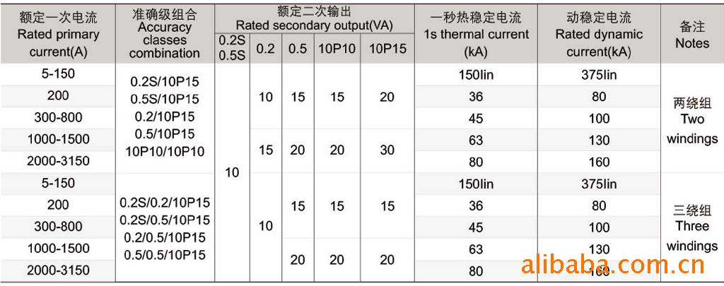 订货时须注出额定电流比,级次组合、额定容量、动热稳定电流值等