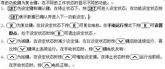 1、 | 可设定1-34段运行(不同的工作状态) |