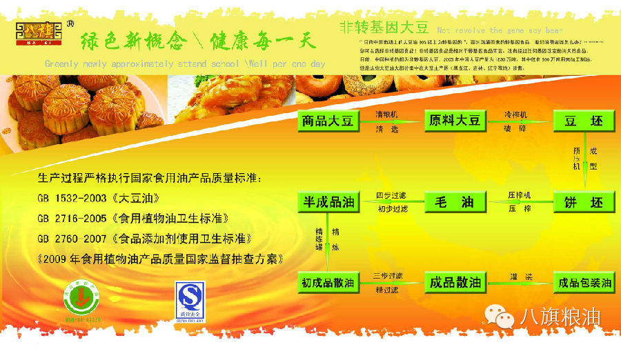 工艺: 公司采用独创的低温密闭冷榨专利技术和多层植物纤维过滤技术,大豆营养成份的全部保留,保证了油品纯正安全。