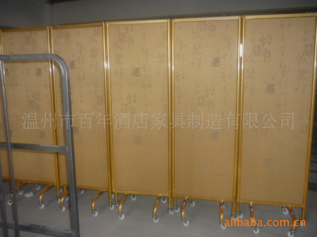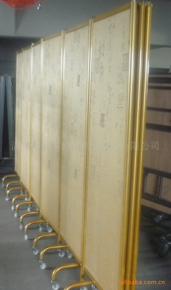 价格:根据尺寸报价,此价格供参考! 屏风:采用9厘木工板两边加4mm厚的密度定型海棉加优质屏风布包面,筐架25*25*1.2mm钢材,金油珠光喷漆,带活动滑轮,可自由收放! 一组屏风:常规3扇1.8*1.8米,可订做多扇;1扇高:180cm,宽:60cm;