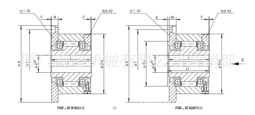 FGR-RA1A2单向离合器,客户可通过直径D定位,并通过法兰A1的螺纹孔连接