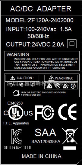 | 认证 型号: | ZF120A-2402000 | 纹波 & 噪音: | ≦80mVp-p |