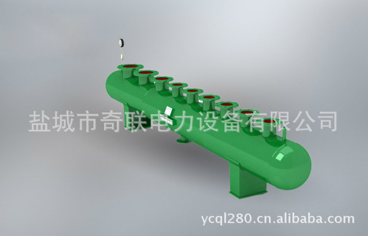 分汽缸是锅炉的主要配套设备,用于把锅炉运行时所产生的蒸汽分配到各路管道中去,分汽缸系承压设备,属压力容器。分汽缸的主要功能是分配蒸汽,因此分汽缸上有多个阀座连接锅炉主汽阀及配汽阀门,以便将分汽缸中蒸汽分至各需要之处。分汽缸主要受压元件为:配汽阀座、主汽阀座、安全门阀座、疏水阀座、压力表座、温度表座;封头、壳体等汽包,也叫分气缸。它不属于锅炉本体,属于受压容器的辅机系统。它的功能就是分配蒸汽给各个用户,一般不设计较大直径,分汽缸下面设有疏水器,分离蒸汽中的水。如果用户有需要,也有将分汽缸设计得较大,但我们习惯称之为“蓄热器”“蓄能器”,专为特殊工艺设计,如瞬间释放大量蒸汽等。