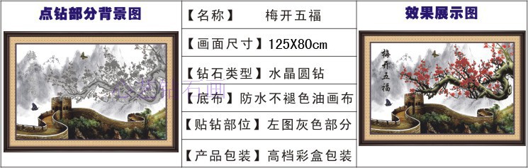 钻石画DIY 大幅客厅5d家居钻石十字绣贴钻画 梅开五福