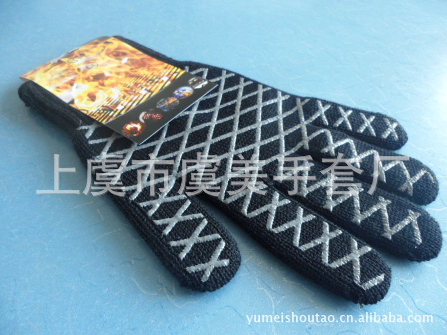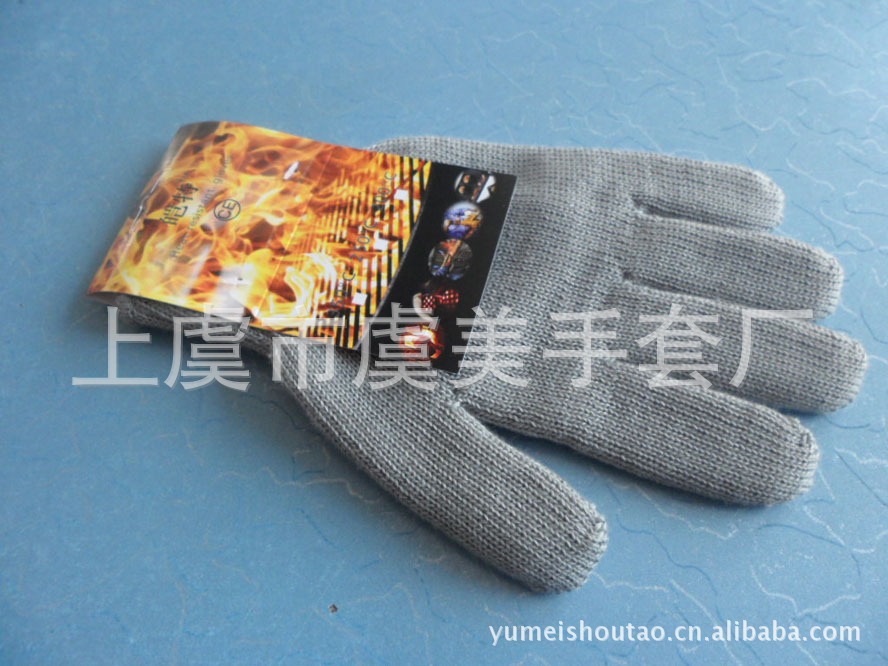 常见采用芳纶1313或芳纶1414,即人们俗称的凯夫拉及诺梅克斯,全棉,涤棉及各种类型的纱线混织耐热手套,应用于特种作业下,符合150C,200C,220C,280C,500C,350C,600C等