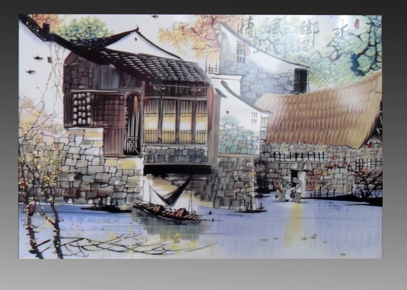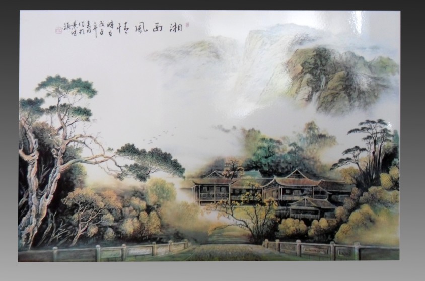 陶瓷瓷板画:在高温烧制的瓷板上手工绘制图案,再经过二次高温烧制而成。是家居大厅中堂、卧室墙壁、酒店厅堂、主题公园陶瓷壁画等装饰的首选。