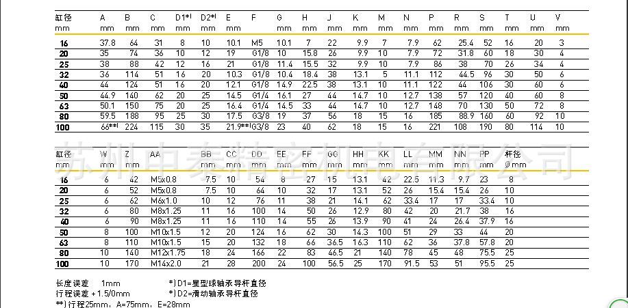 | • 大范围的行程选择,缸径16-100mm | 工作温度: -20°C ~ +80°C | |