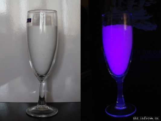 2.半透明蓝----日间外观为微黄色液体,蓄光后发蓝色光。