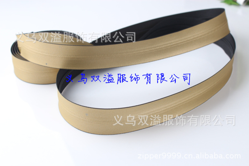厂家直销:5号5#尼龙黑布金色防水膜防水拉链