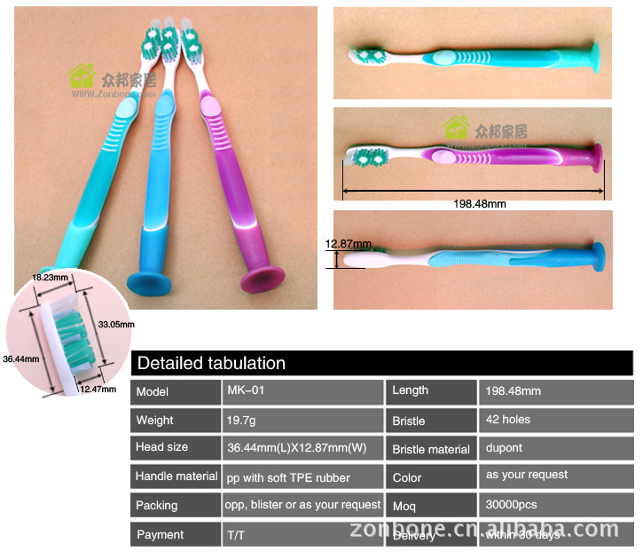 MK-01 众邦家居承接OEM贴牌加工 吸盘站立蓝色刷丝提醒功能牙刷